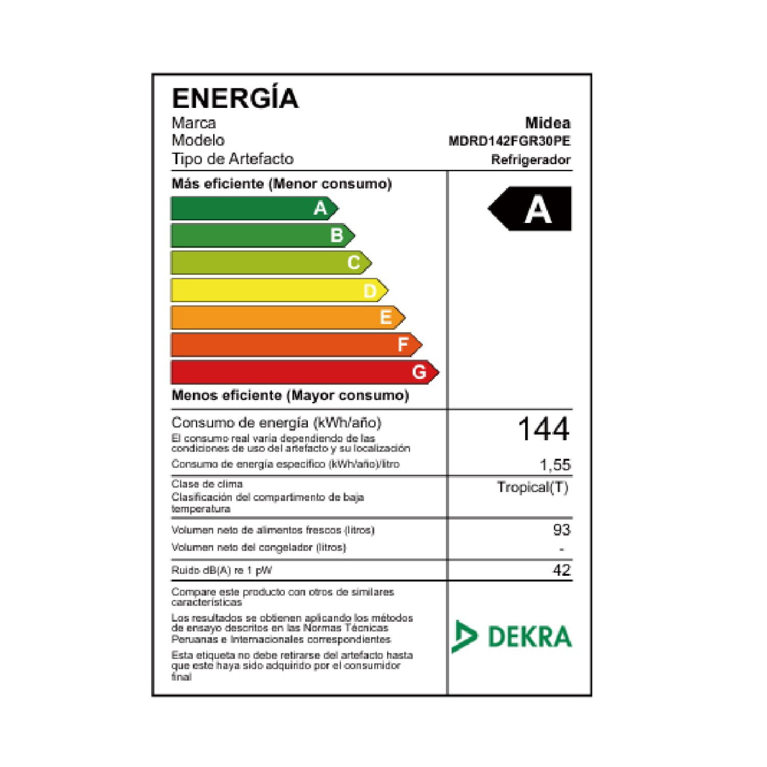 Descubre el Frigobar Midea de 1 puerta y 93 litros en un elegante color negro. Este compacto y funcional frigobar es ideal para cualquier espacio, ya sea en tu hogar, oficina o en tu habitaci—n. Con su dise–o moderno y eficiente, ofrece suficiente capacidad para almacenar tus bebidas y alimentos favoritos, manteniendolos frescos y al alcance de tu mano. Su bajo consumo energetico lo convierte en una excelente opcion para quienes buscan ahorrar en sus facturas de electricidad. No te pierdas la oportunidad de tener este practico electrodomestico que combina estilo y funcionalidad. ÁHaz tu compra ahora y disfruta de la comodidad que te brinda el Frigobar Midea!
